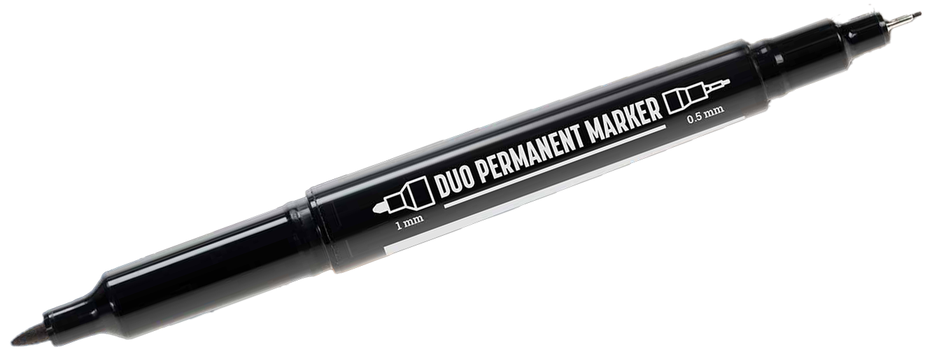 Duo Permanent Marker med hhv. 0,5 og 1,0 mm sort filtspids med permanent blæk.