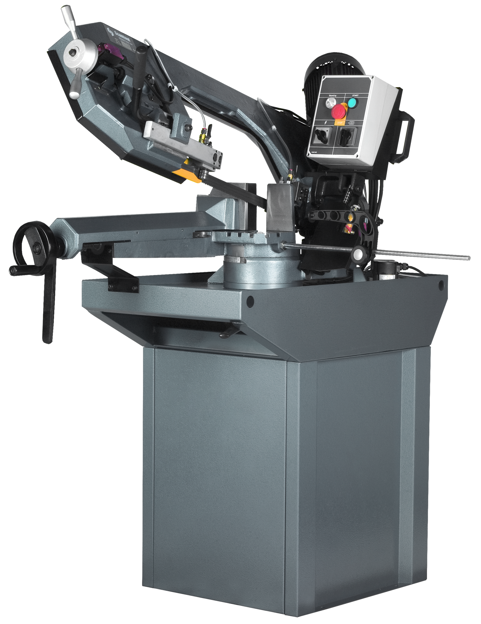 Let adgang til kontrolboks. Sikkerhedskontakt for korrekt klingetilspænding. Hydraulisk tilspænding. Hurtig udløsning af skruestik. Kapacitet runde rør: 0° 225 mm (8 7/8") - 45° 140 mm (5 1/2") - 60° 90 mm (3 1/2"). Kapacitet firkantede rør: 0° 200×200 mm (7 7/8" × 7 7/8") - 45° 140×140 mm (5 1/2" × 5 1/2") - 60° 90×90 mm (3 1/2" × 3 1/2").