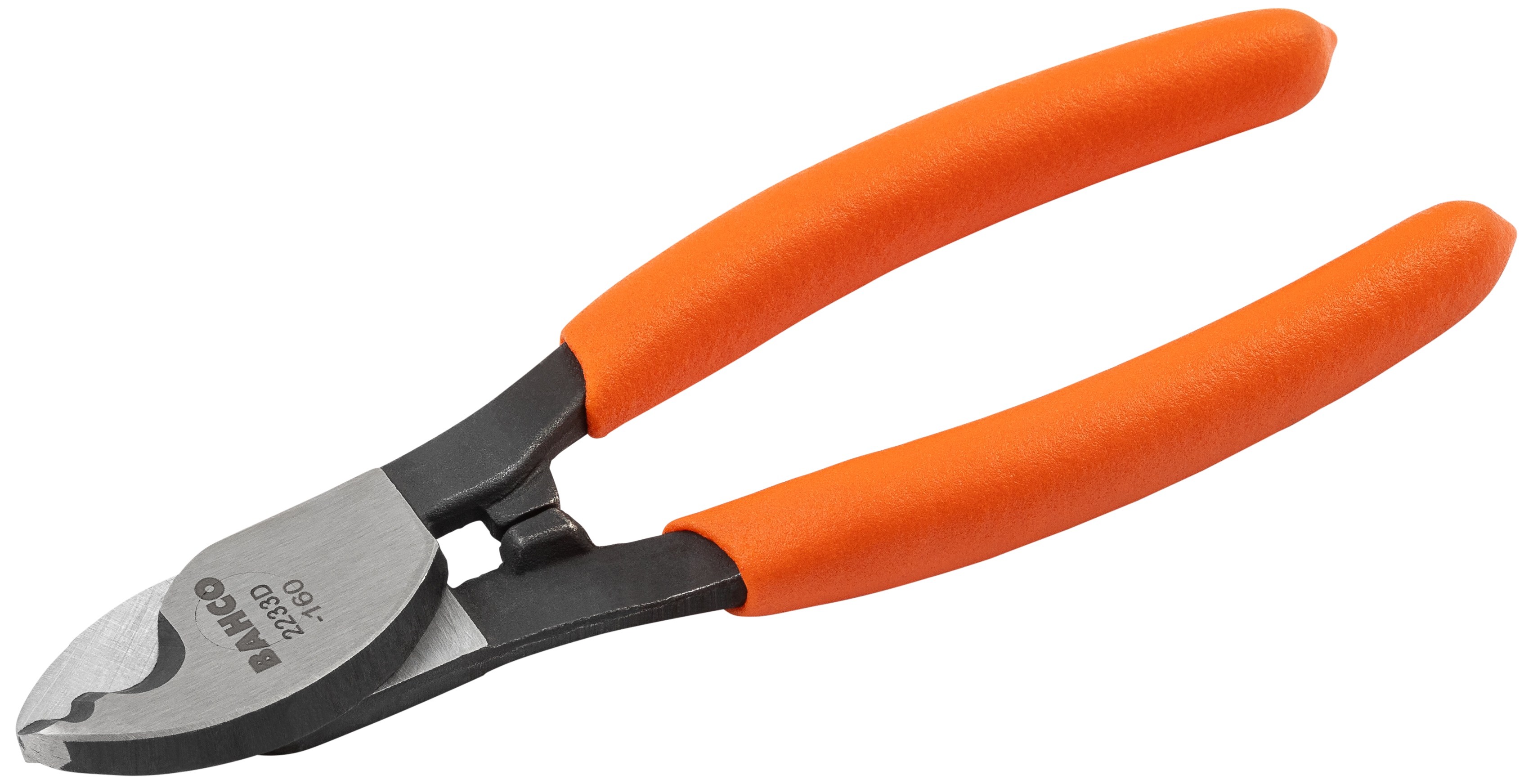Afisoleringstang/kabelsaks til både afisolering og klipning af kobber-/aluminiumskabler. Fremstillet af karbonstål med smedet overflade i sort finish og højglanspolerede kæber samt plastdyppede håndtag.