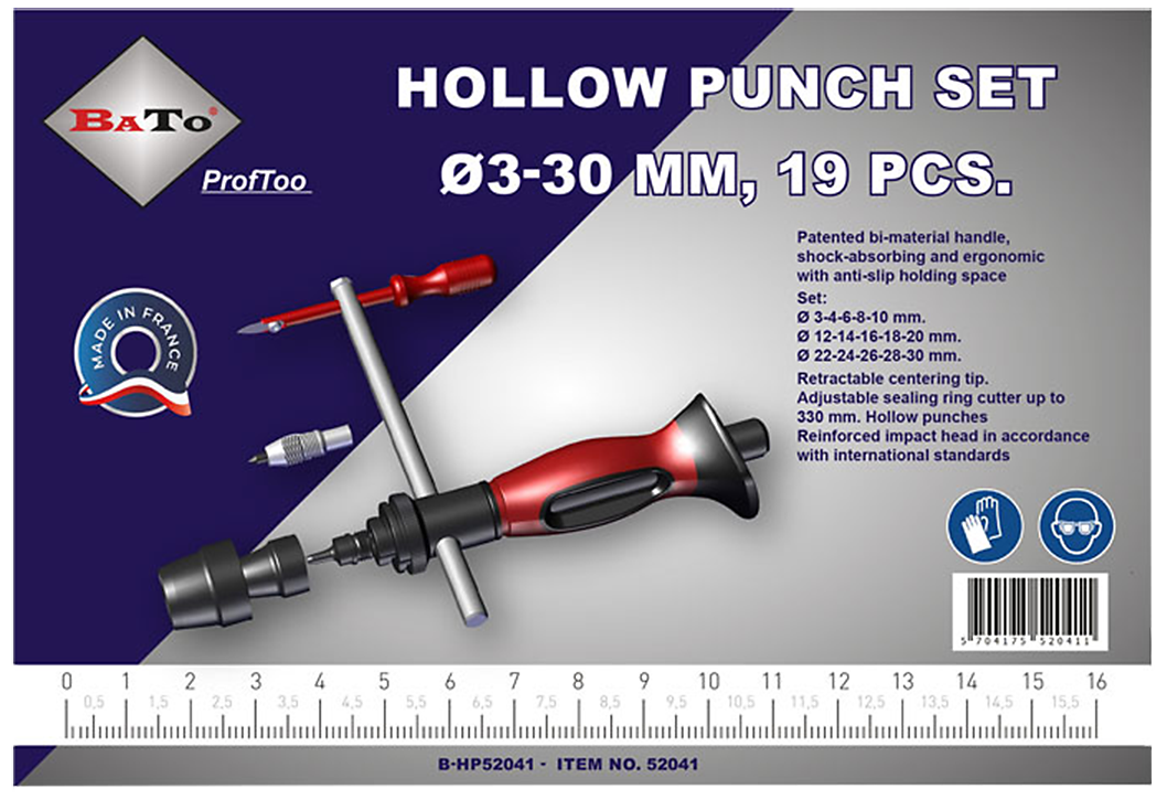 Huggepibesæt til udstansning i pap, plast, blødt plast, gummi, blødt gummi, forstærket gummi med magnet, aluminium (op til 0,3 mm tykkelse), læder, papirbånd, skum, kork, stof mv. Leveres samlet i praktisk æske.