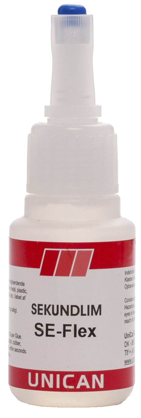 Unitite Sekundlime er hurtighærdende cyanoacrylater, der med succes kan anvendes til limning på langt de fleste plasttyper samt gummi, træ, stof, læder, karton, kunststoffer, keramik, metaldele m.m. Hærdningen af denne limtype sker super-hurtigt når de påførte emner presses sammen. Se-Flex udmærker sig ved at have en let flexibilitet efter hærdning og tåler derfor små vibrationer uden at limen krakelerer.