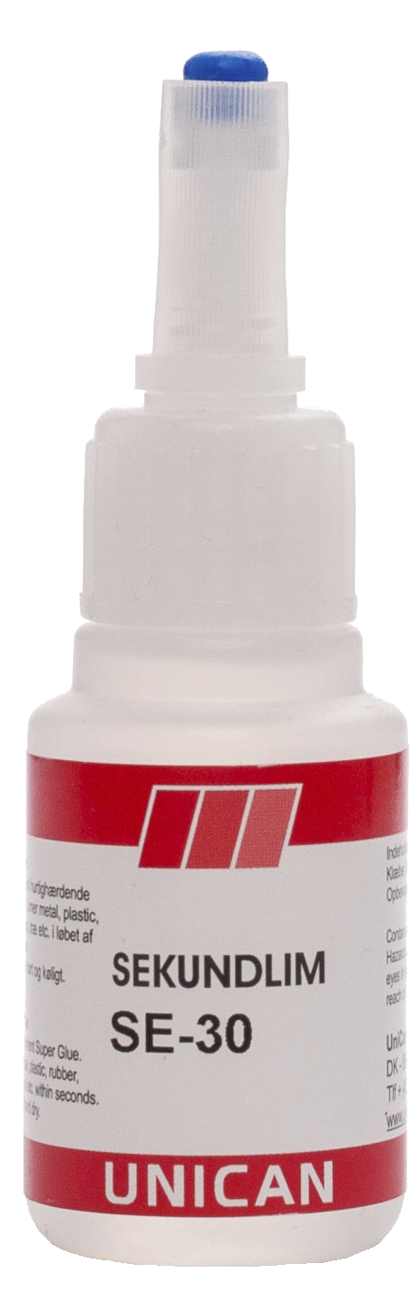 Unitite Sekundlime er hurtighærdende cyanoacrylater, der med succes kan anvendes til limning på langt de fleste plasttyper samt gummi, træ, kunststoffer, metaldele m.m. Hærdningen af denne limtype sker super-hurtigt når de påførte emner presses sammen. Unitite Se-30 sekundlim er specielt velegnet til porøse materialer samt træ, læder, stof, karton, keramik m.v.