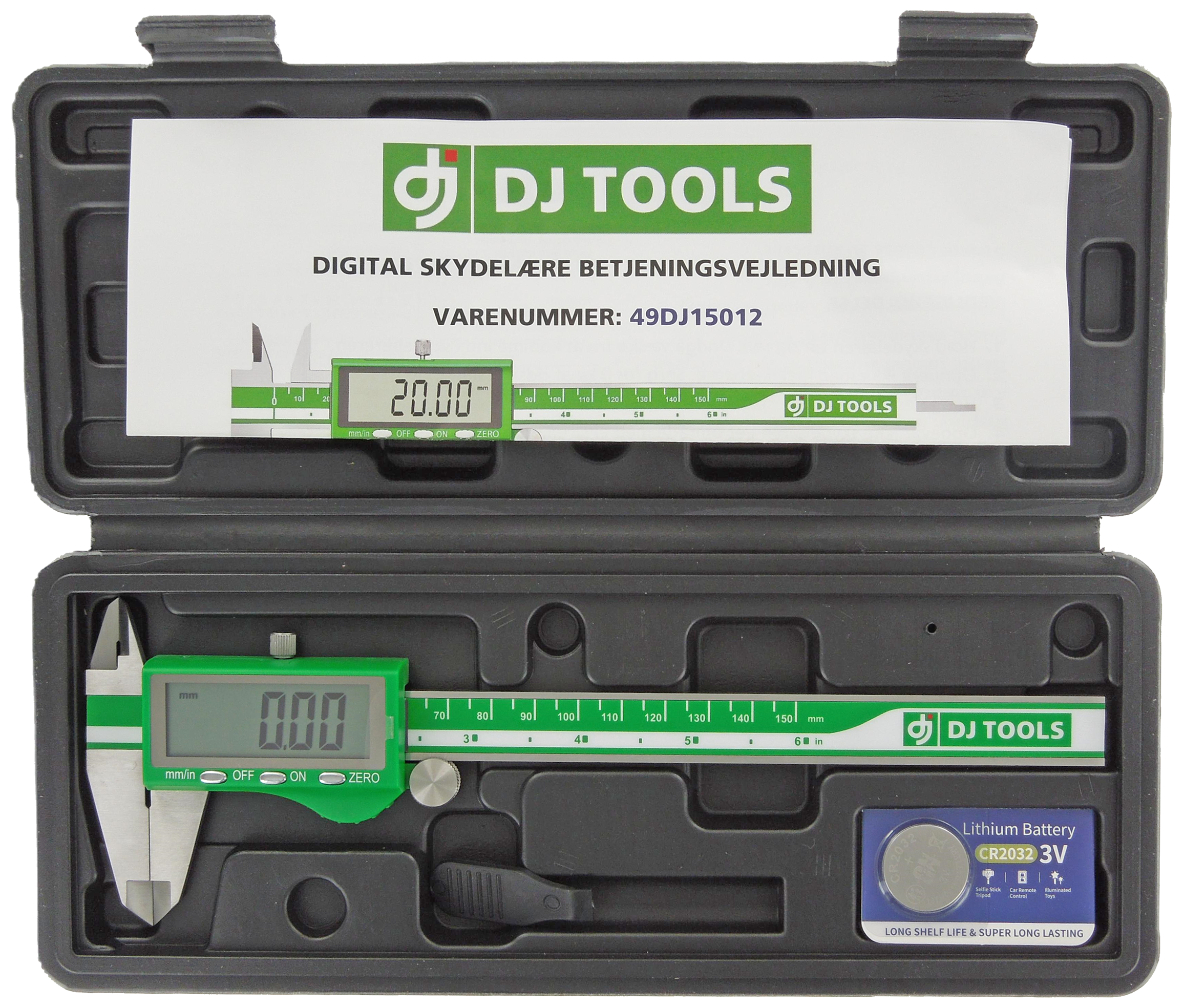 Digital-skydelære til indvendig og udvendig diametermåling, trinmåling og dybdemåling. Skydelæren har et stort display med 12 mm cifferhøjde samt låseskrue, finindstillingsrulle og dybdemål. Måleområde 0-150 mm med 0,01 mm aflæsning. Nøjagtighed 0,02 mm. Skift mellem mm/tomme samt nulstillingsfunktion. Skydelæren tænder automatisk ved bevægelse og slukker igen efter 6 minutter uden bevægelse. DIN EN ISO 13385-1:2020.