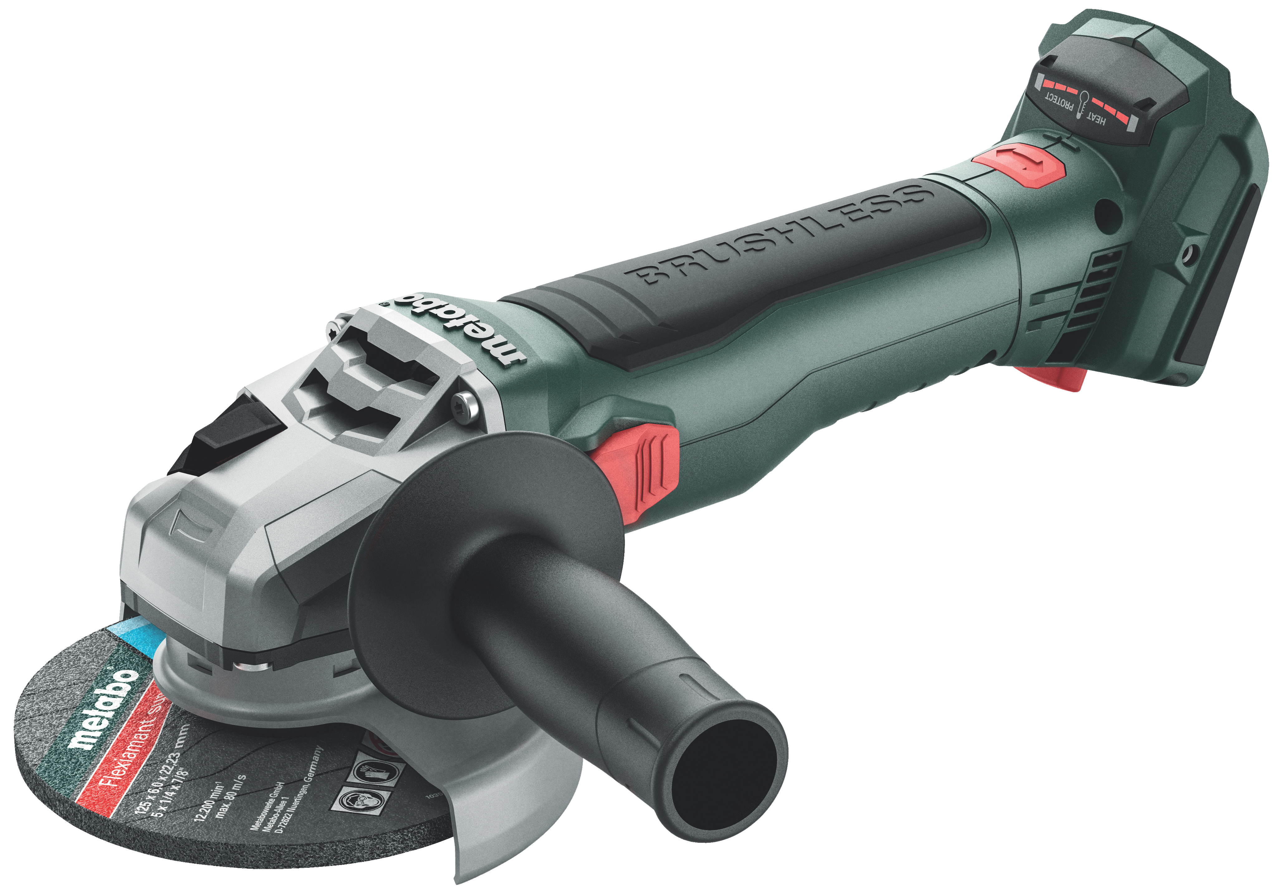 Vinkelsliber med kapacitet så stærk som en 230 V maskine på 1.100 W. Kulfri motor, der ikke skal serviceres, med den højeste effektivitet og maksimalt enkel håndtering.